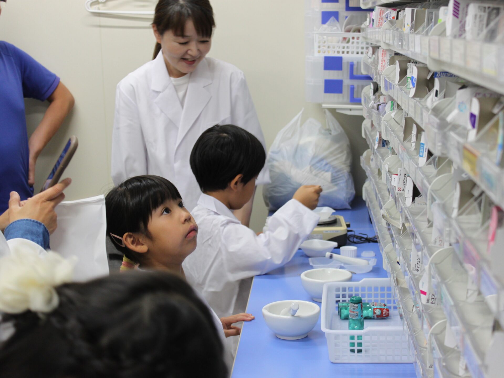 そして、今年はこども薬剤師体験教室を初開催!昨年の来場者アンケートのお声から実現した企画です♪(4年目にしてやっと薬局主催のおまつりらしくなってきました。笑)